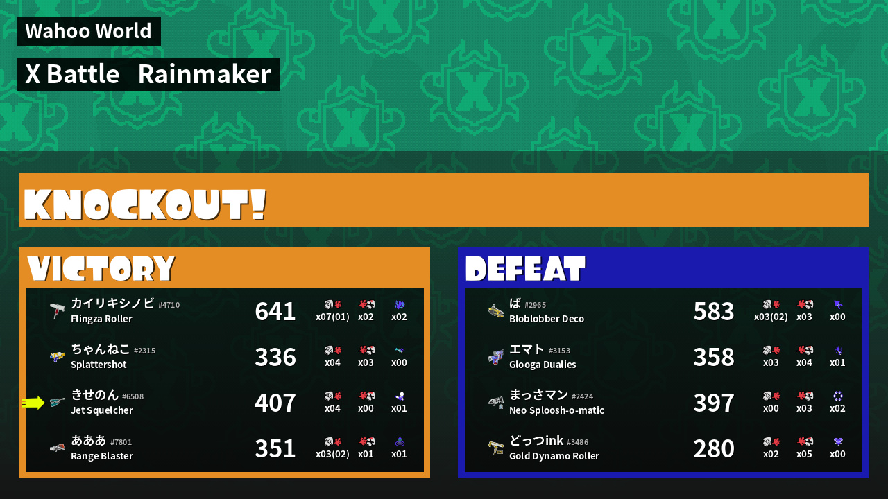 | Mode | Rainmaker - X Battle | ||