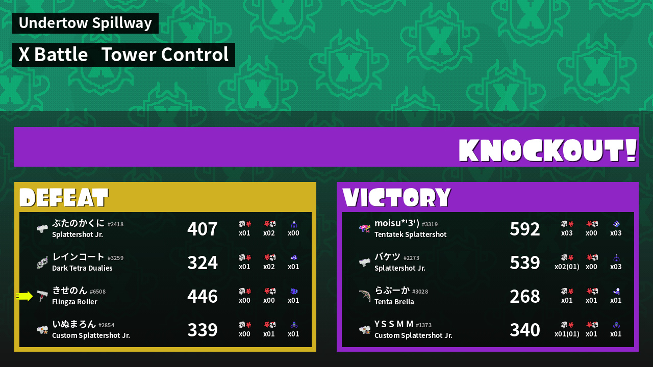 | Medals | #1 Turf Inker #1 Damage Taker #1 Tenta Missiles User | ||