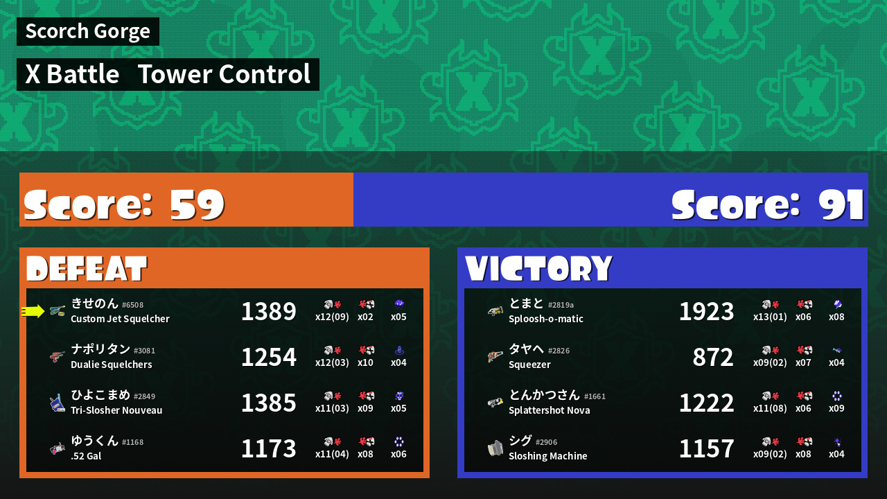 | Mode | Tower Control - X Battle | ||