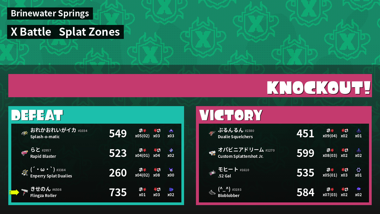 | Medals | #1 Splat Zone Inker #1 Turf Inker #1 Tenta Missiles User | ||