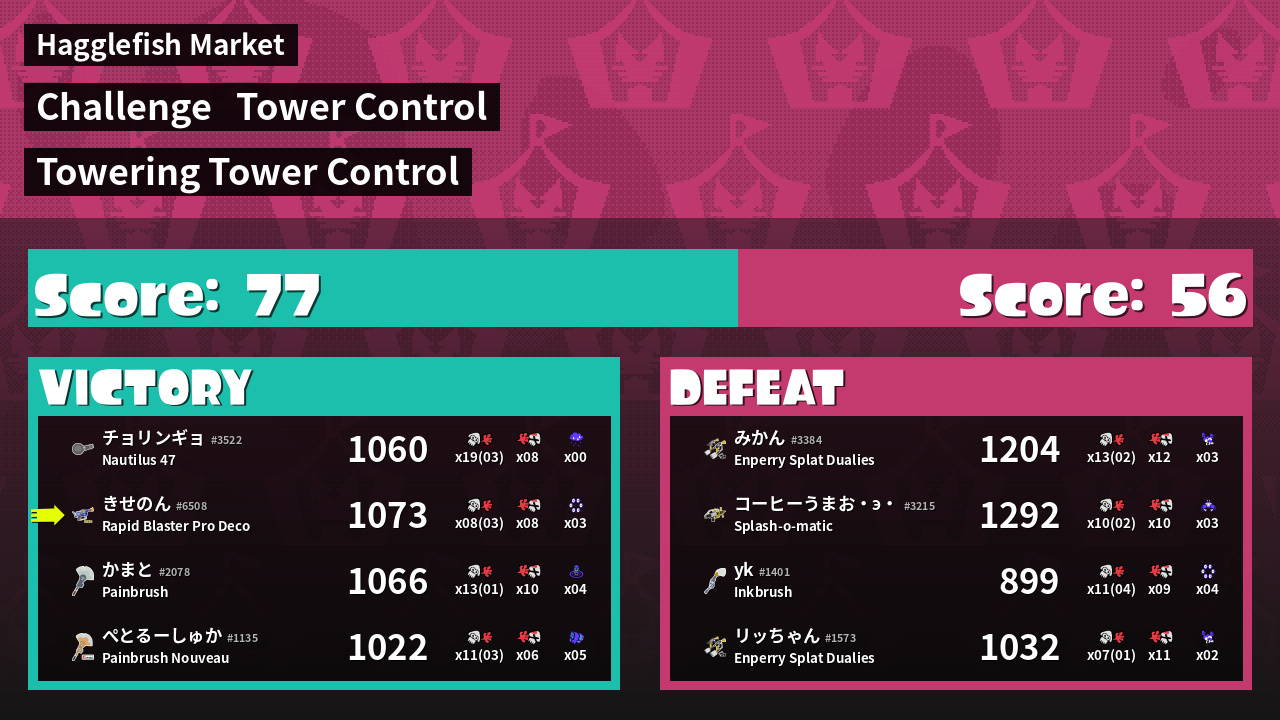 | Medals | #1 Turf Inker #1 Popular Target #1 Splat Assister | ||