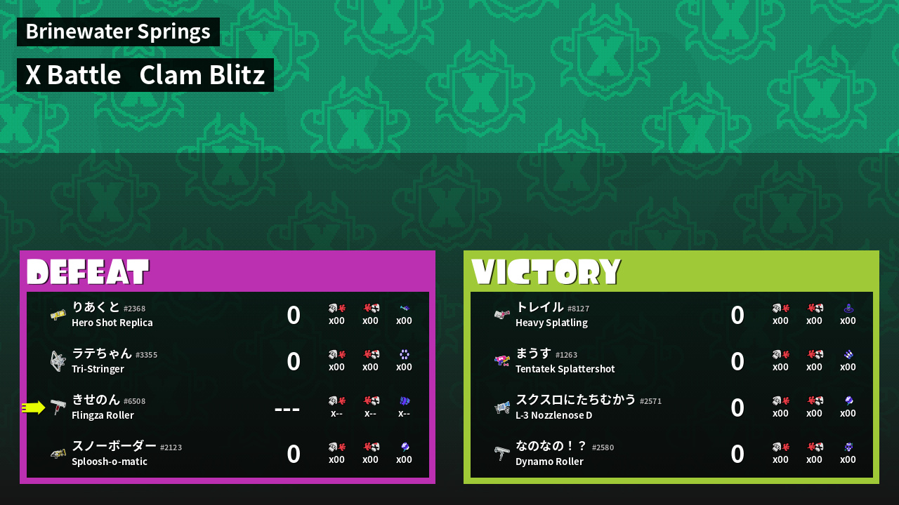 | Weapon | Flingza Roller ( Ink Mine / Tenta Missiles) | ||