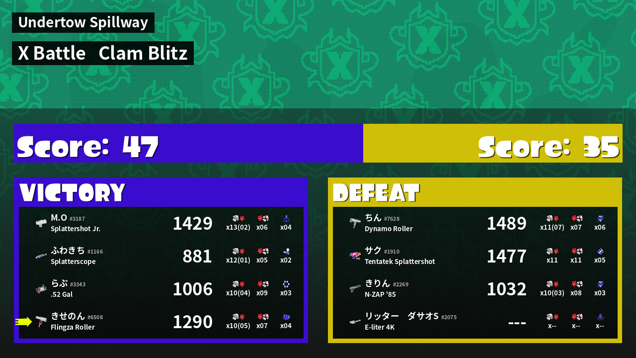 | Medals | #1 Splat Assister #1 Damage Taker #1 Tenta Missiles User | ||