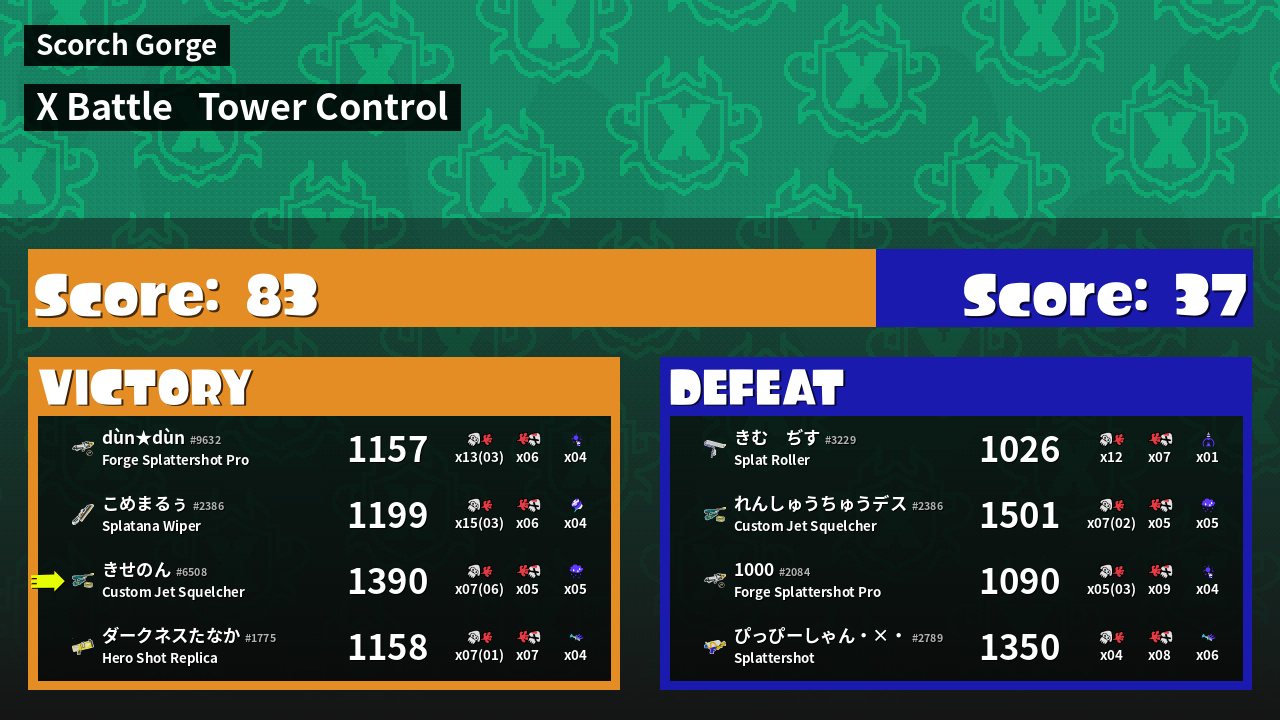 | Medals | #1 Turf Inker #1 Splat Assister #1 Damage Taker | ||