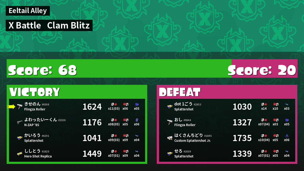 | Mode | Clam Blitz - X Battle | ||