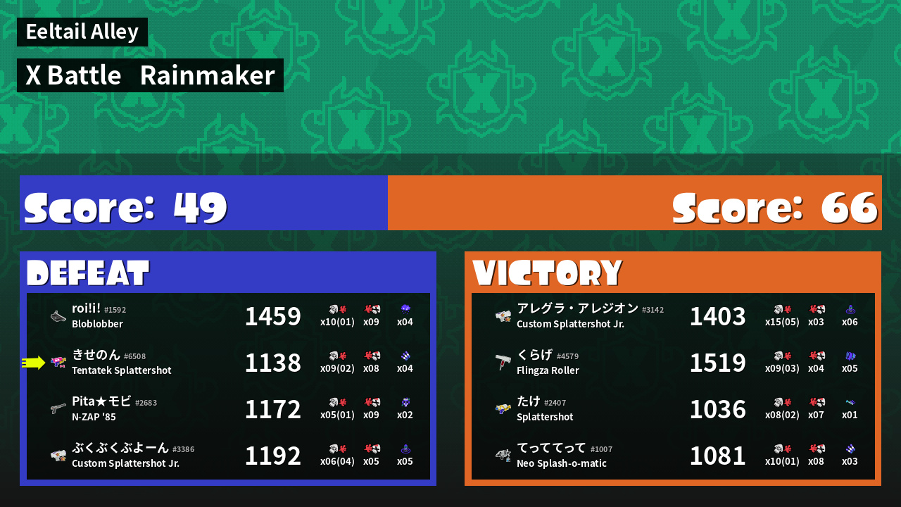| Weapon | Tentatek Splattershot ( Splat Bomb / Triple Inkstrike) | ||