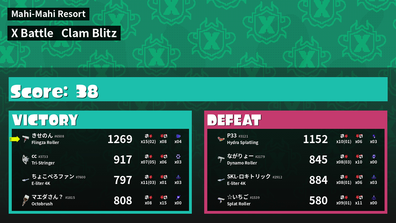 | Mode | Clam Blitz - X Battle | ||