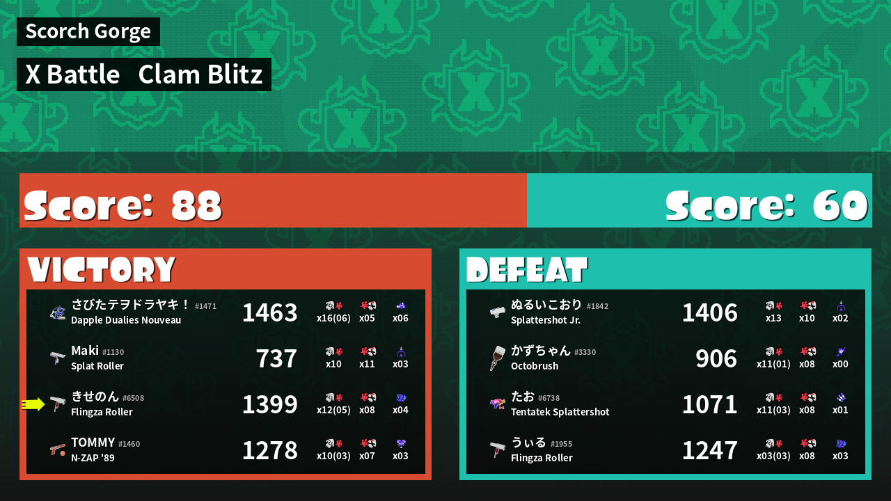 | Medals | #1 Tenta Missiles User #2 Overall Splatter #2 Turf Inker | ||