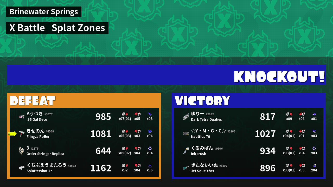 | Mode | Splat Zones - X Battle | ||