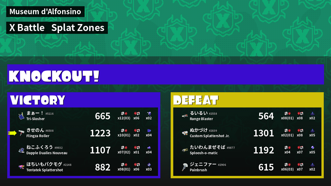 | Mode | Splat Zones - X Battle | ||