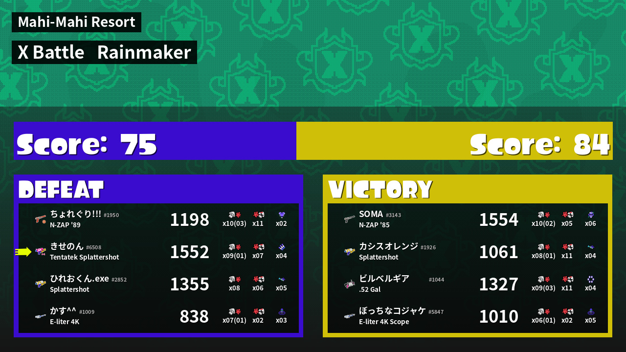 | Medals | #1 Turf Inker #1 Popular Target #1 Enemy Splatter | ||
