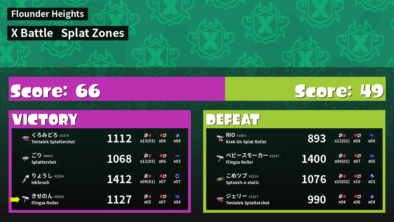 | Medals | #1 Splat Zone Inker #1 Super Jump Spot #1 Tenta Missiles User | ||