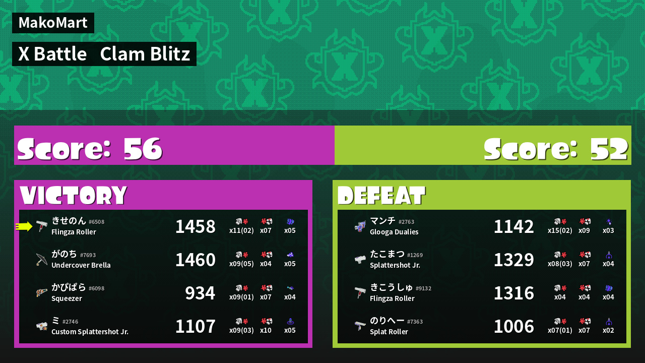 | Mode | Clam Blitz - X Battle | ||