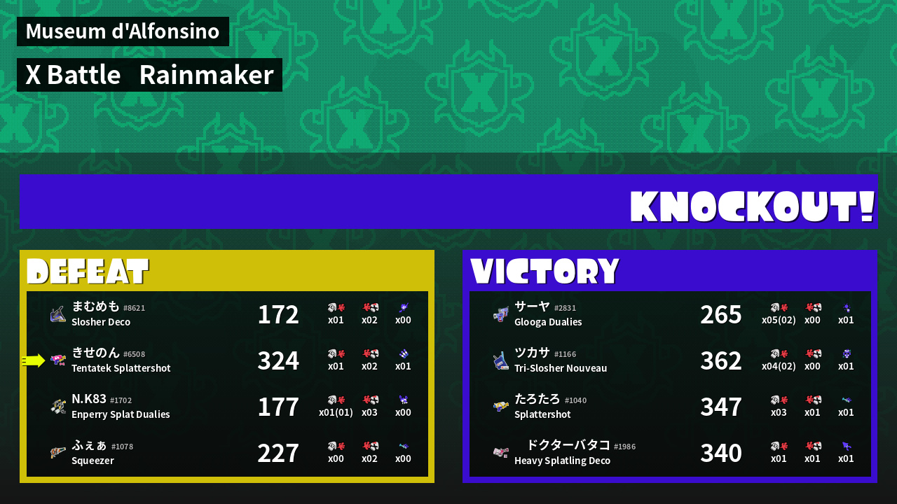 | Medals | #1 Overall Splatter #1 Score Booster Record-Score Setter | ||