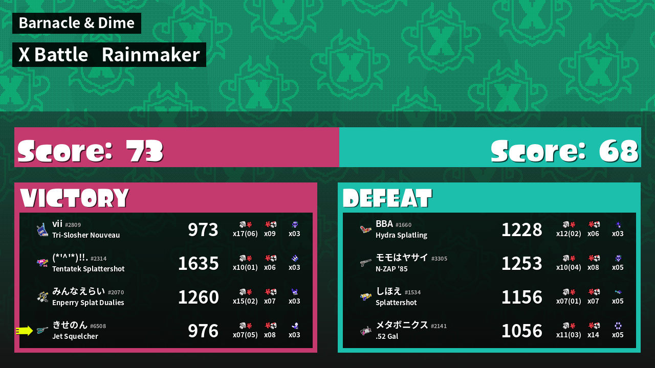 | Mode | Rainmaker - X Battle | ||