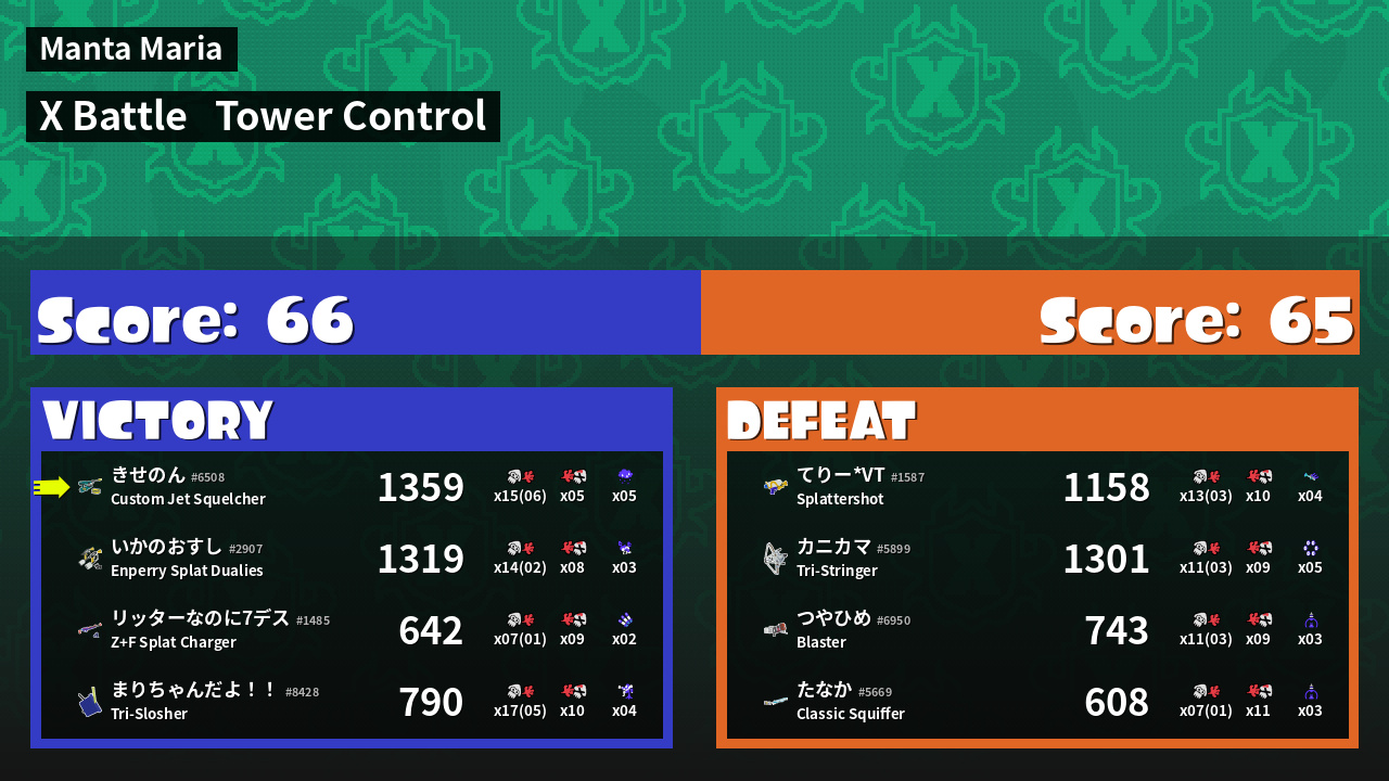 | Mode | Tower Control - X Battle | ||