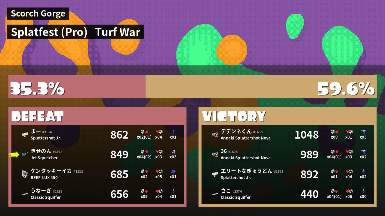 | Mode | Turf War - Splatfest (Pro) | ||