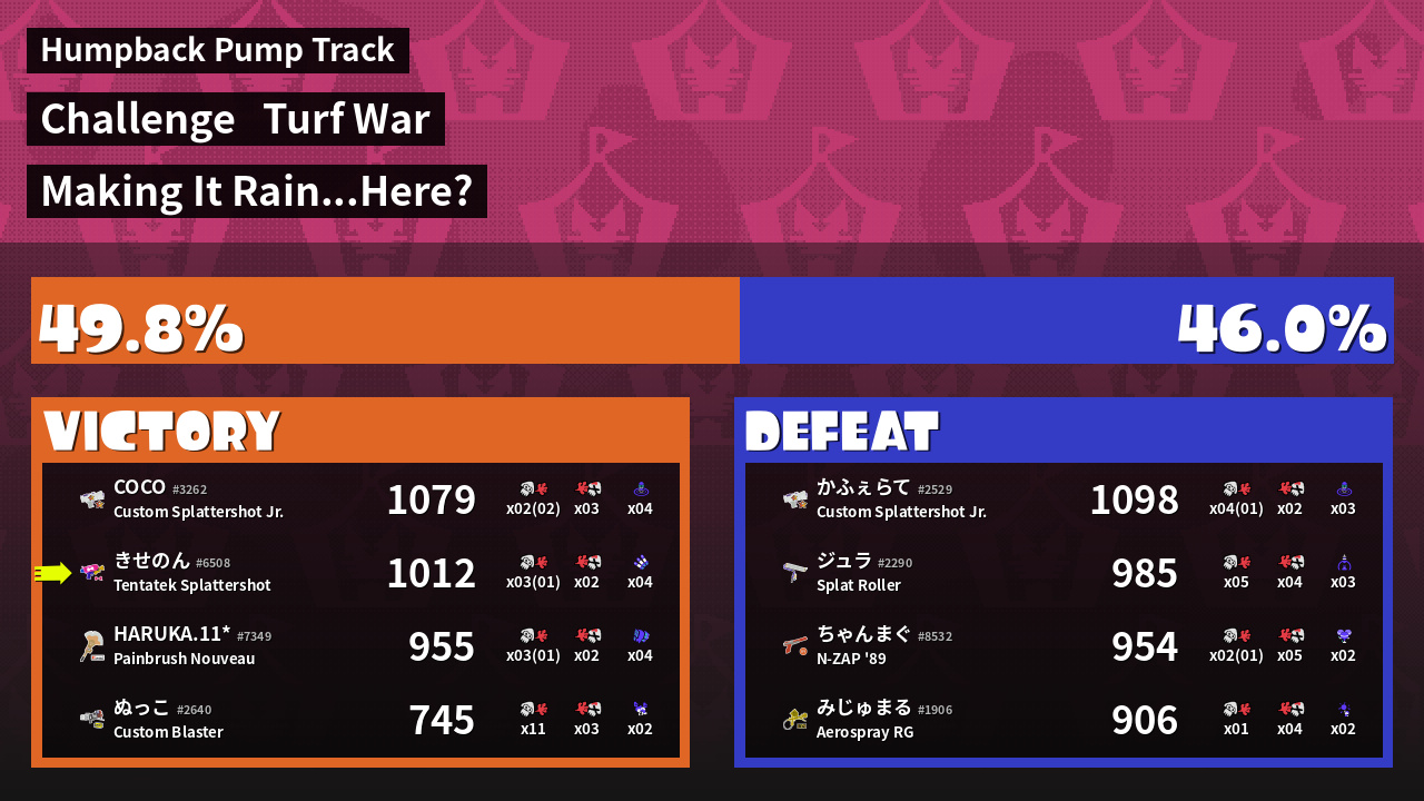 | Medals | #1 Enemy-Base Inker #1 Super Jump Spot #1 Ground Traveler | ||