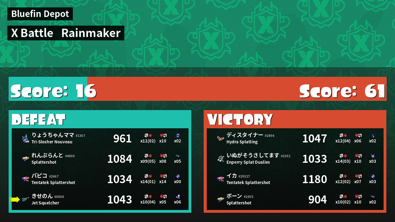 | Mode | Rainmaker - X Battle | ||