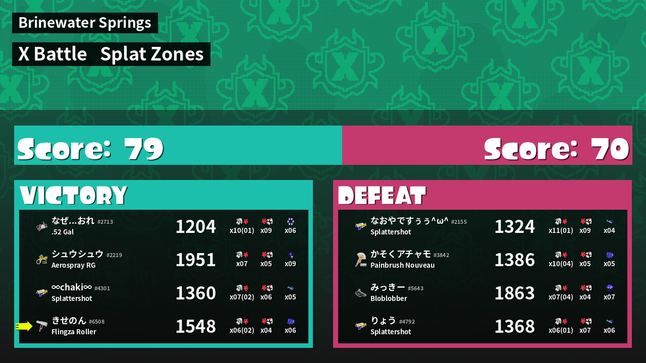 | Medals | #1 Splat Assister #1 Tenta Missiles User #2 Splat Zone Inker | ||