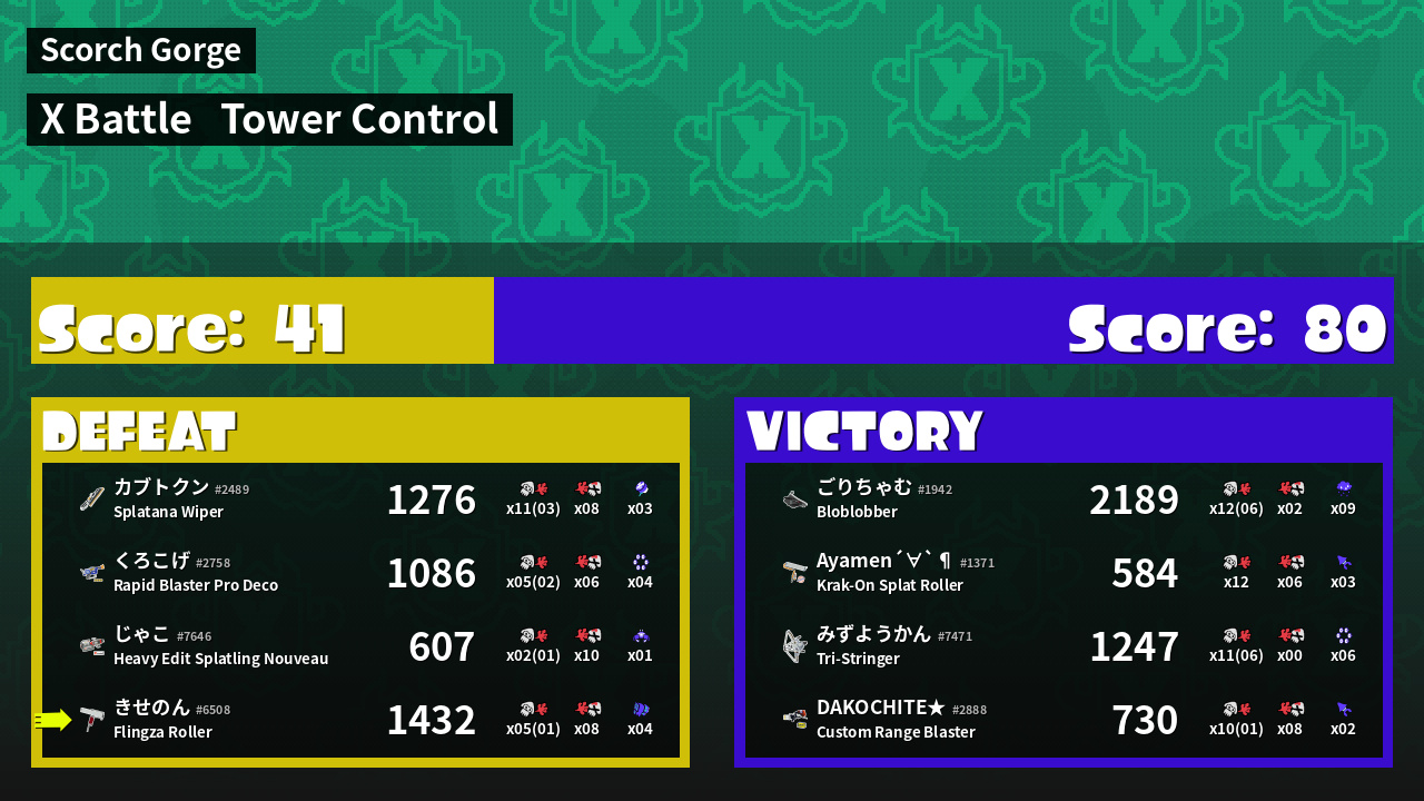 | Mode | Tower Control - X Battle | ||