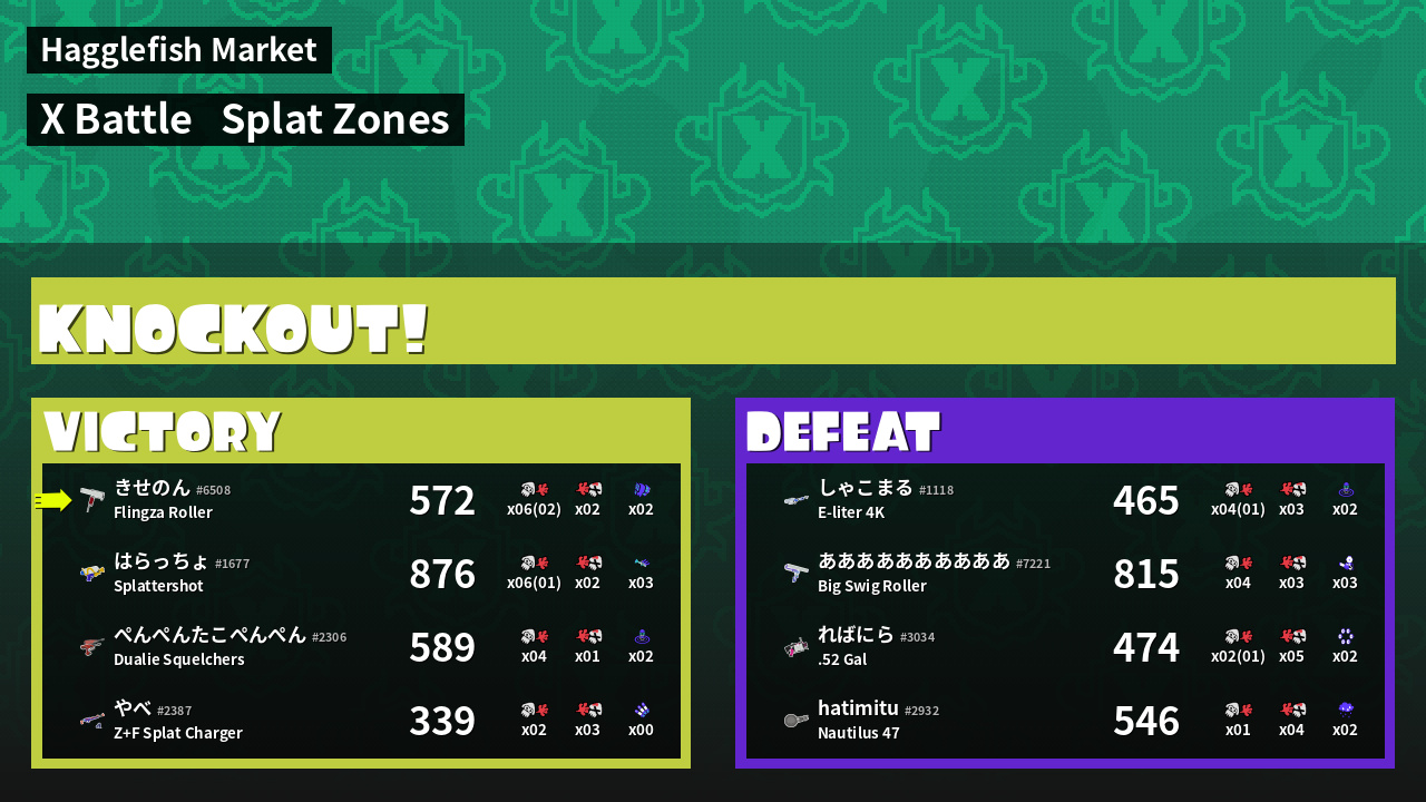 | Mode | Splat Zones - X Battle | ||
