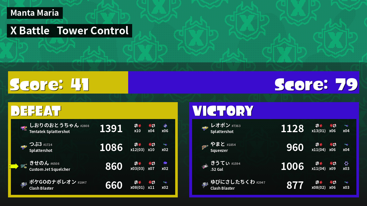 | Mode | Tower Control - X Battle | ||