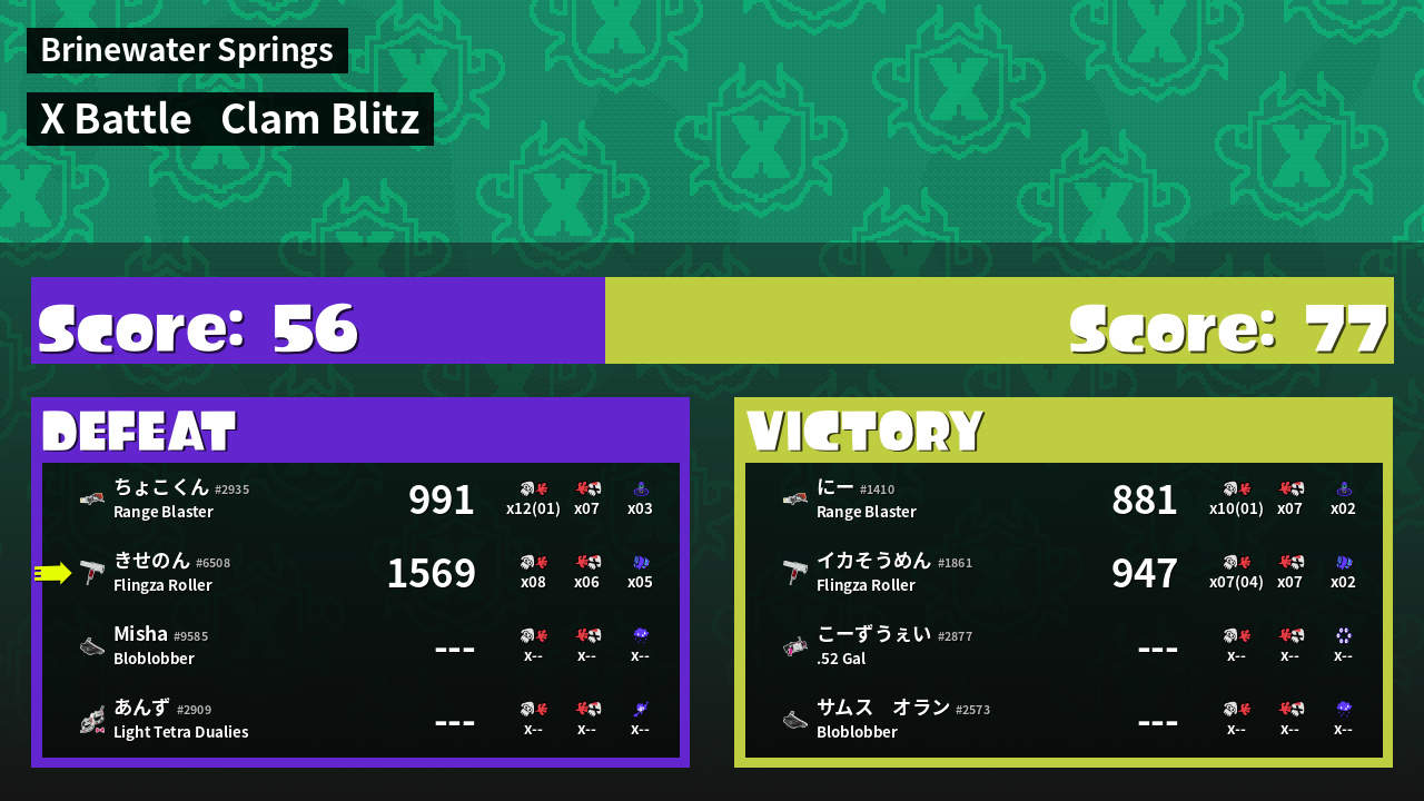 | Weapon | Flingza Roller ( Ink Mine / Tenta Missiles) | ||