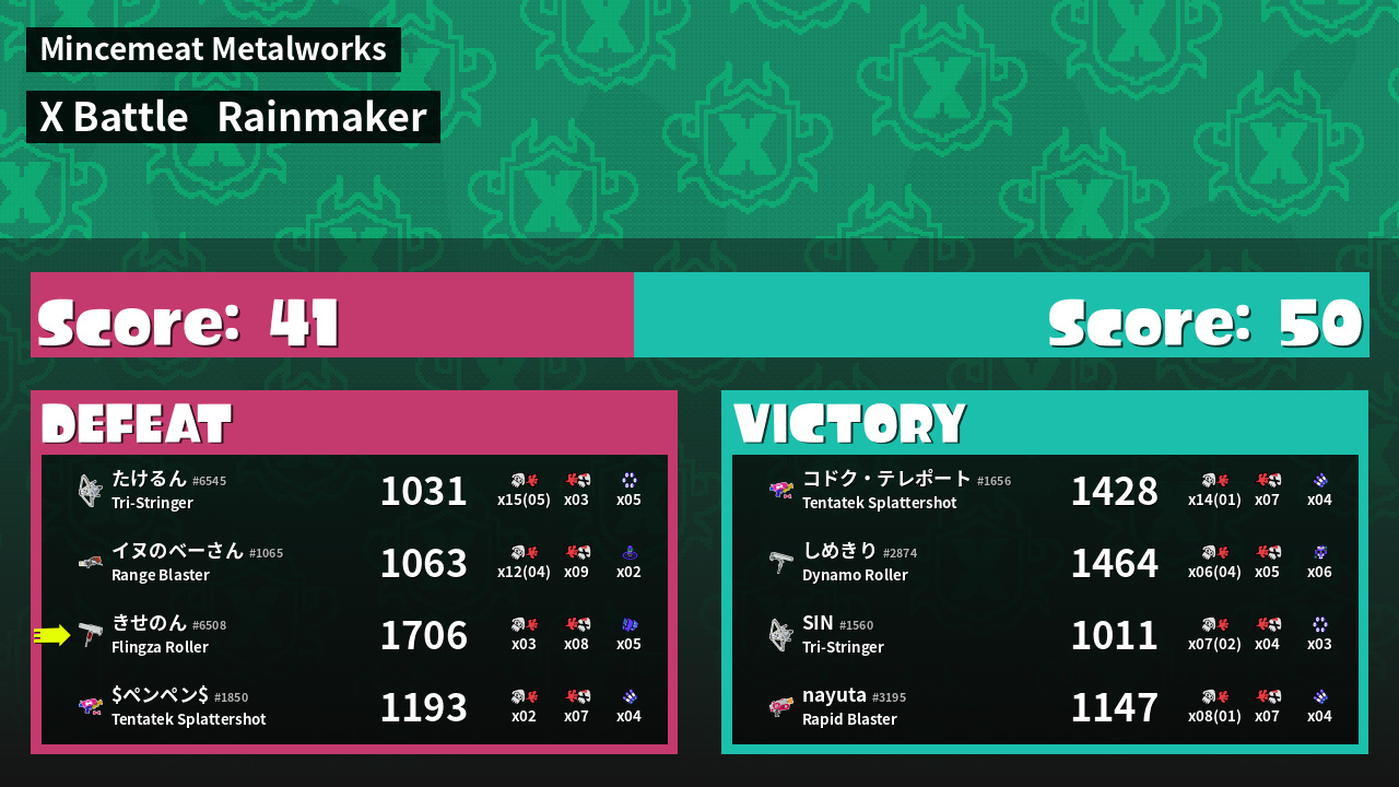 | Weapon | Flingza Roller ( Ink Mine / Tenta Missiles) | ||