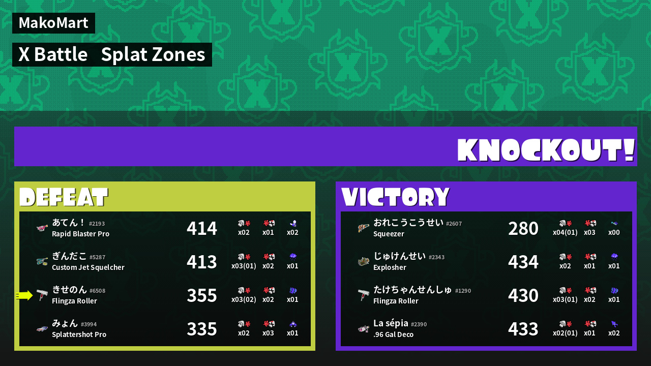 | Weapon | Flingza Roller ( Ink Mine / Tenta Missiles) | ||