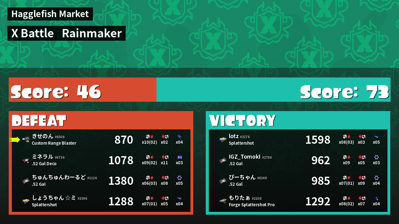 | Medals | #1 Overall Splatter #1 Popular Target #1 Super Jump Spot | ||