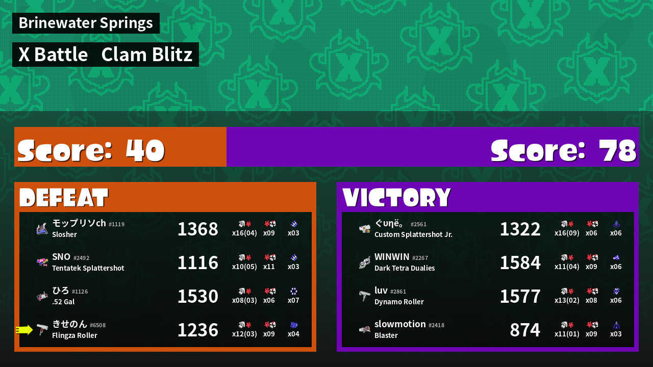 | Weapon | Flingza Roller ( Ink Mine / Tenta Missiles) | ||
