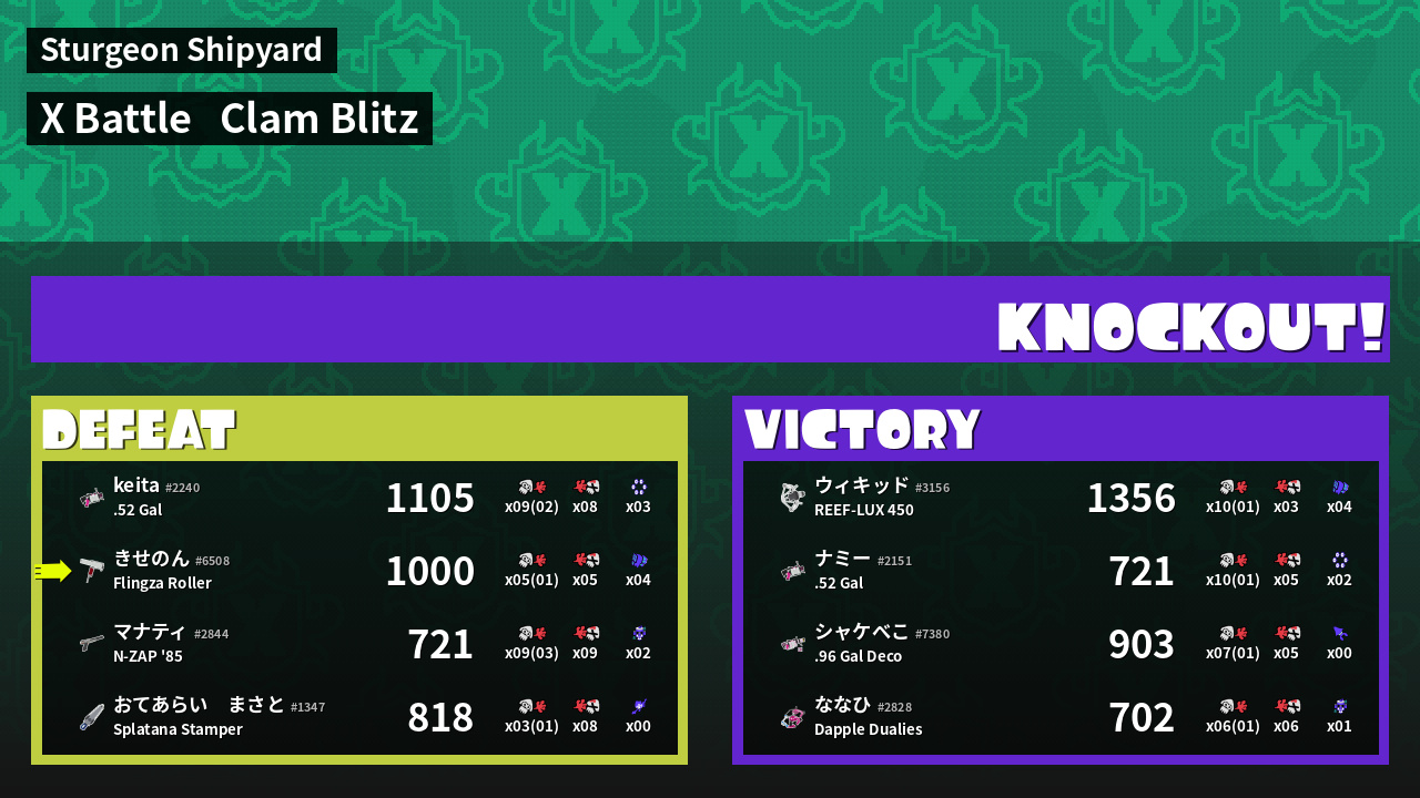 | Mode | Clam Blitz - X Battle | ||