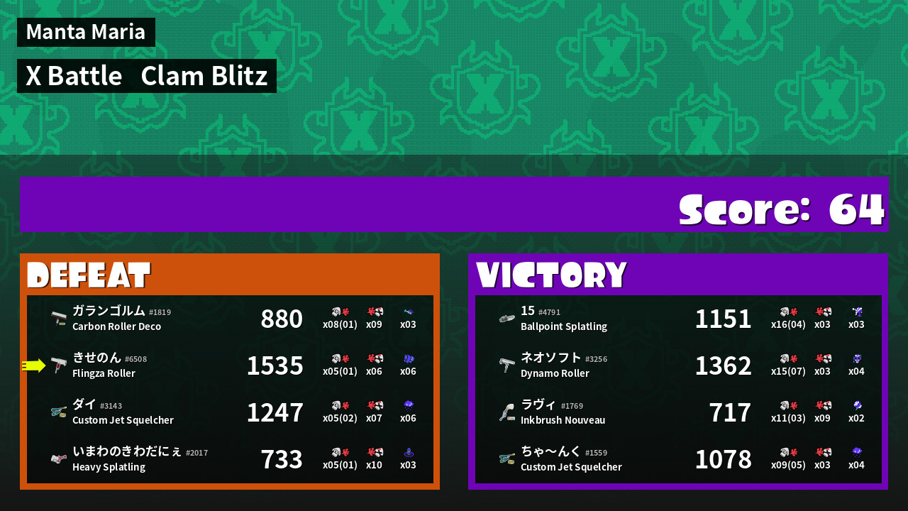 | Weapon | Flingza Roller ( Ink Mine / Tenta Missiles) | ||