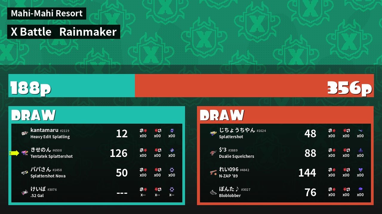 | Weapon | Tentatek Splattershot ( Splat Bomb / Triple Inkstrike) | ||