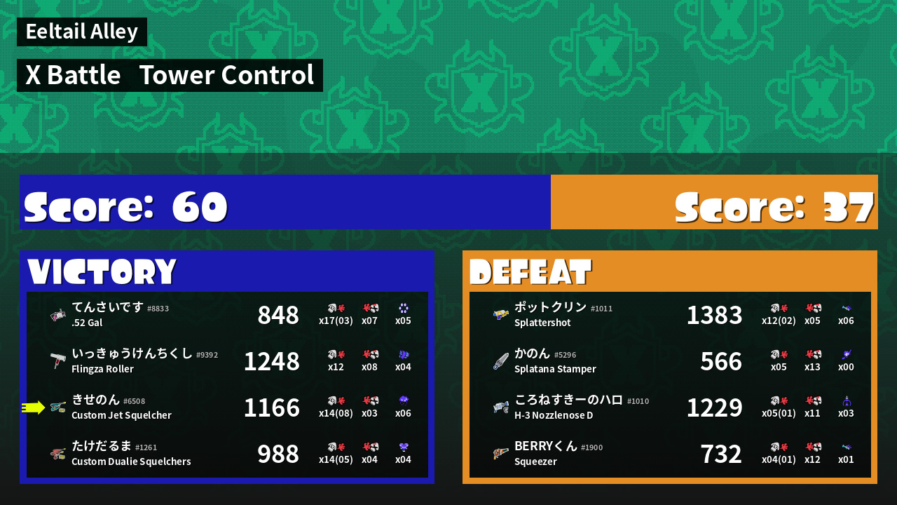 | Medals | #1 Popular Target #1 Splat Assister #1 Ink Consumer | ||