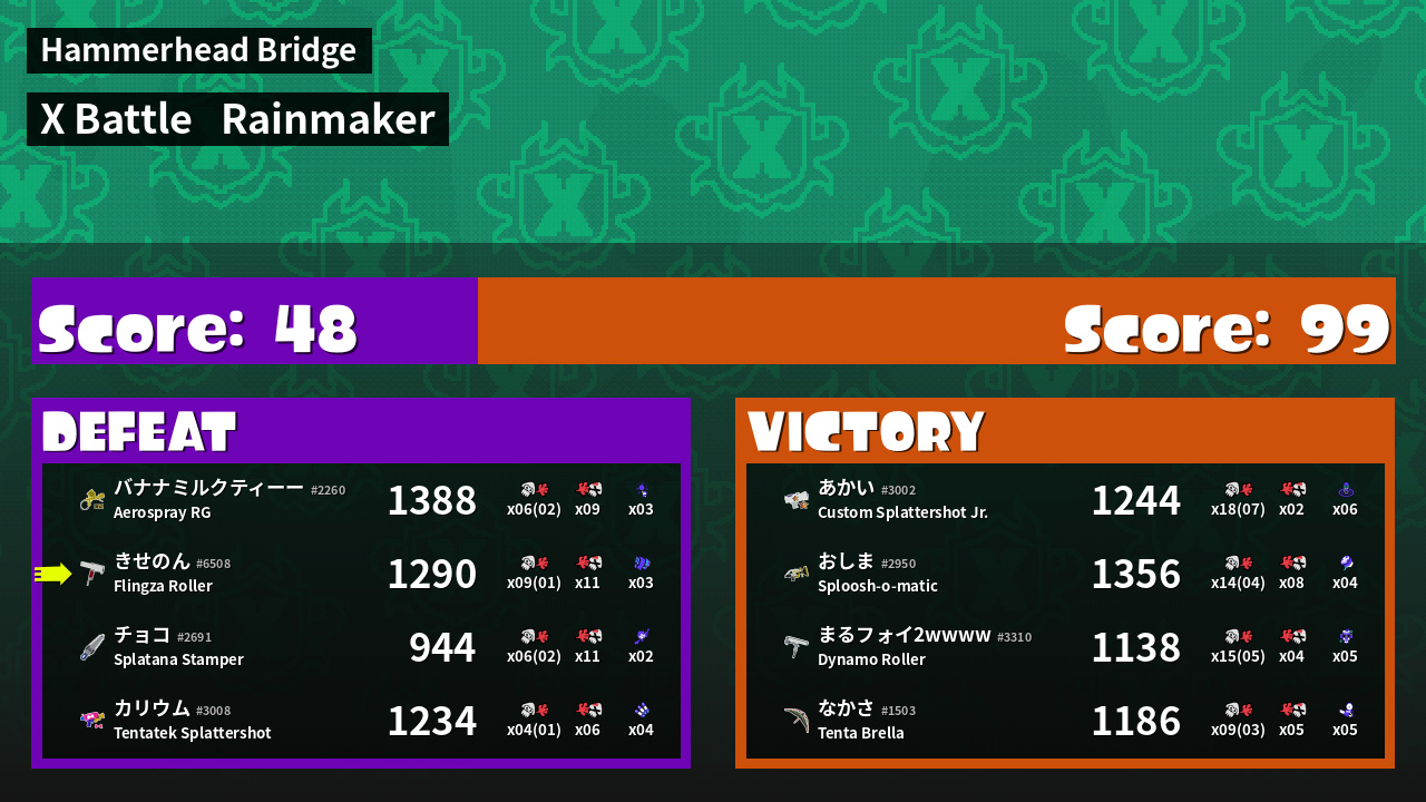 | Weapon | Flingza Roller ( Ink Mine / Tenta Missiles) | ||