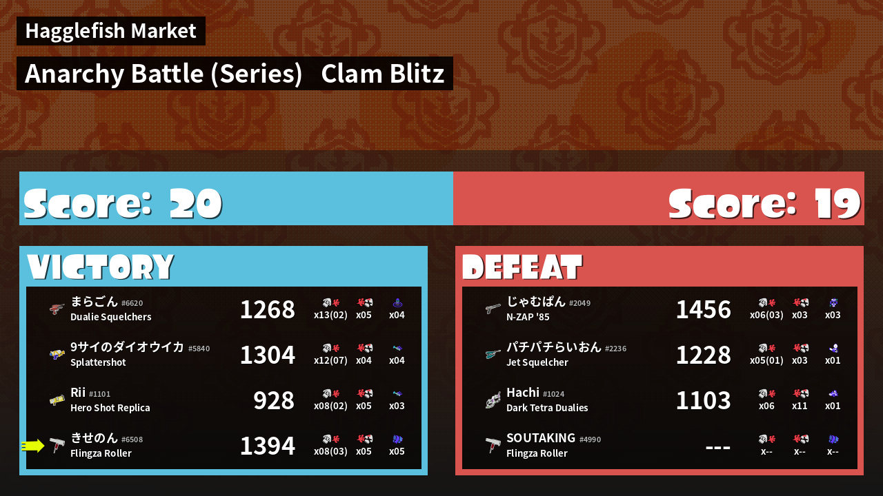 | Mode | Clam Blitz - Anarchy Battle (Series) | ||