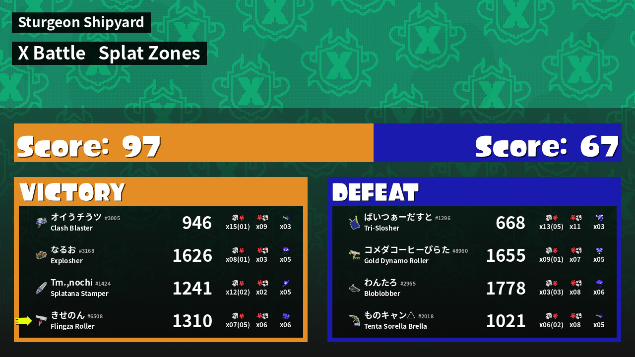 | Medals | #1 Splat Assister #1 Tenta Missiles User #2 Splat Zone Guard | ||