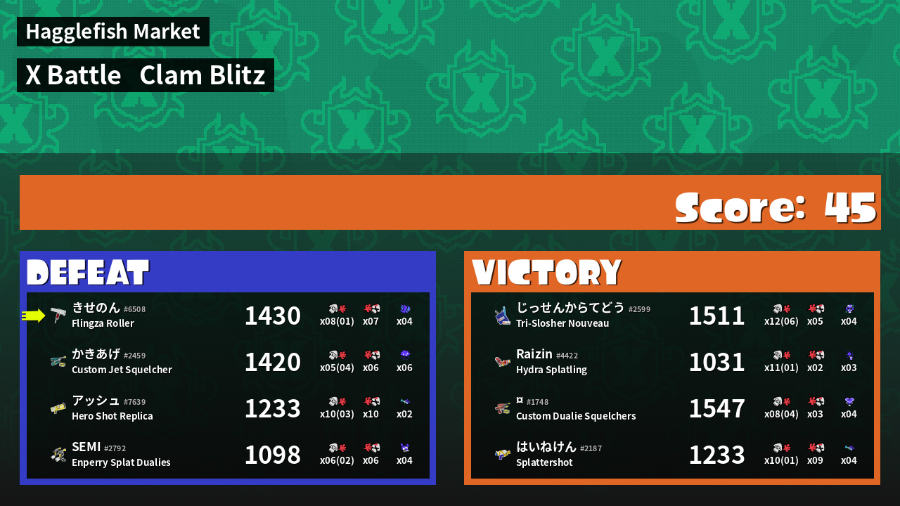| Mode | Clam Blitz - X Battle | ||
