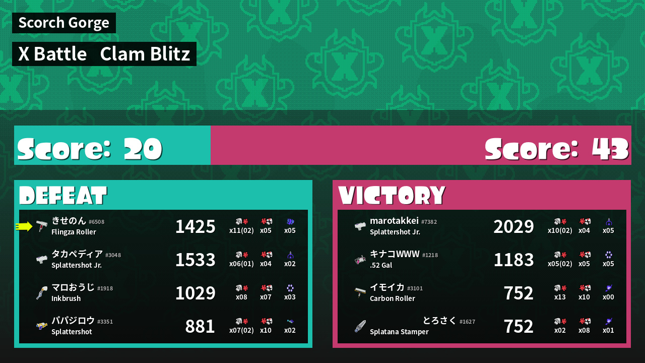 | Mode | Clam Blitz - X Battle | ||