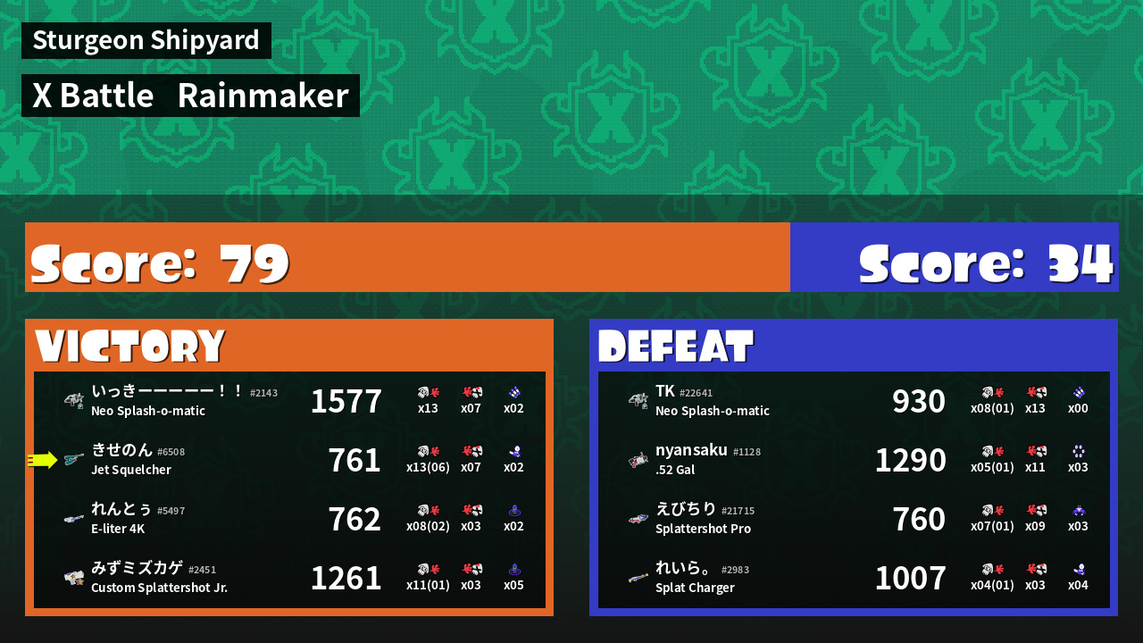 | Medals | #1 Overall Splatter #1 Splat Assister #1 Checkpoint Breaker | ||