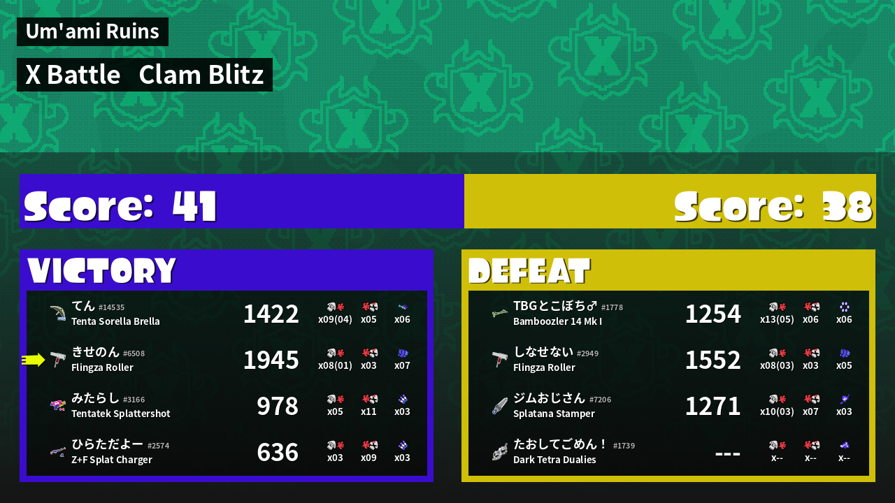 | Weapon | Flingza Roller ( Ink Mine / Tenta Missiles) | ||
