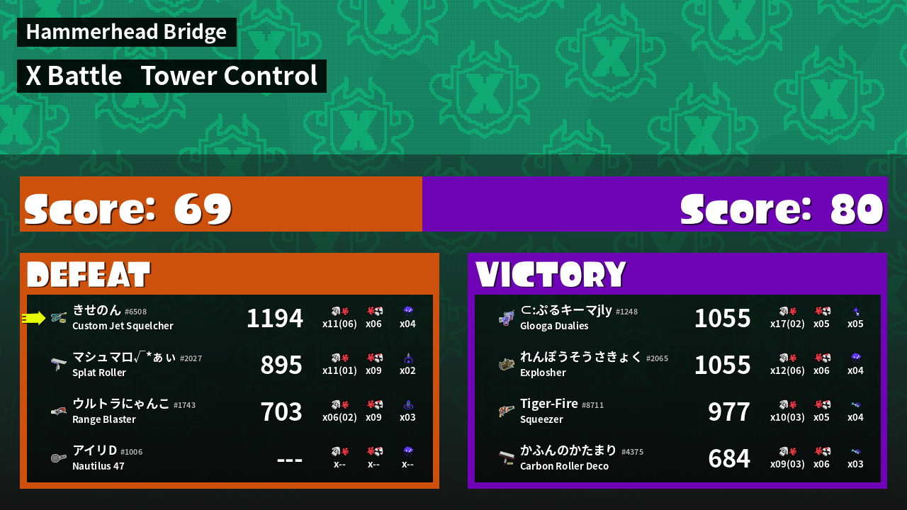 | Mode | Tower Control - X Battle | ||