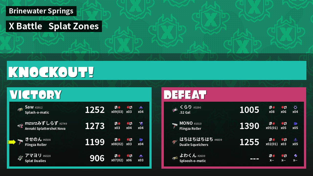 | Mode | Splat Zones - X Battle | ||