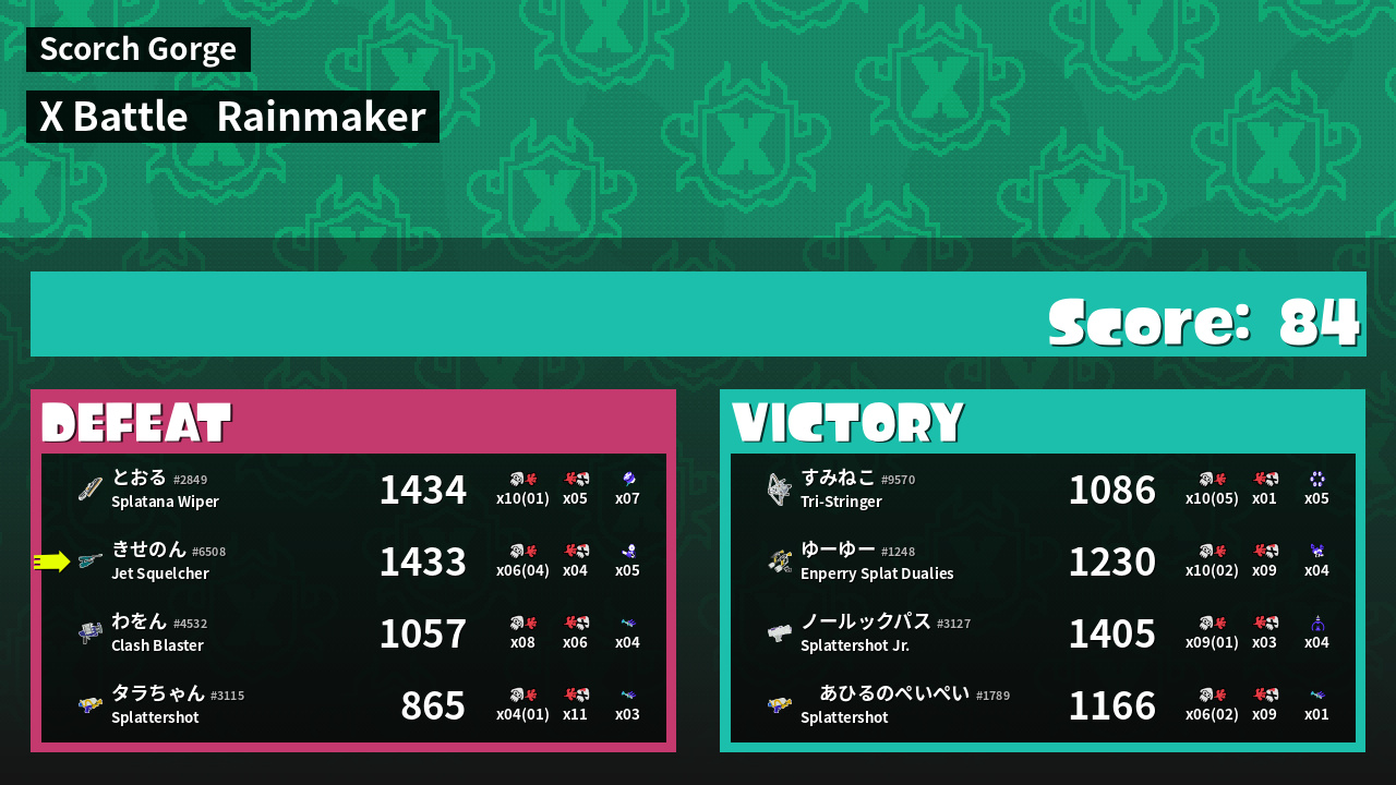 | Medals | #1 Super Jump Spot #1 Splat Assister #1 Ink Vac User | ||