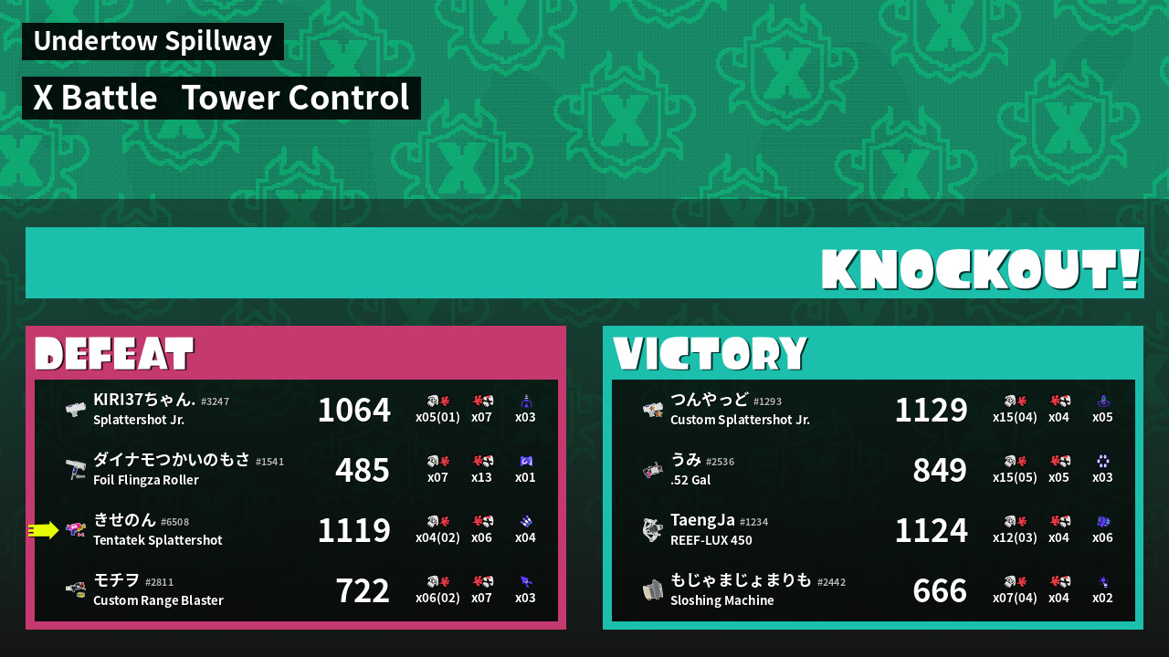 | Medals | #1 Turf Inker #1 Splat Assister #1 Damage Taker | ||