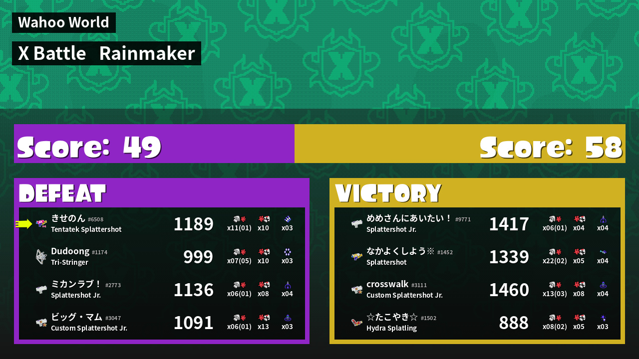| Medals | #1 Overall Splatter #1 Score Booster Record-Score Setter | ||