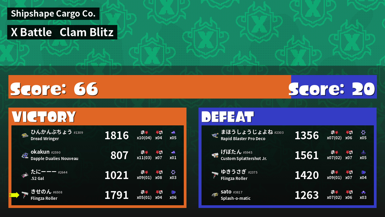 | Mode | Clam Blitz - X Battle | ||