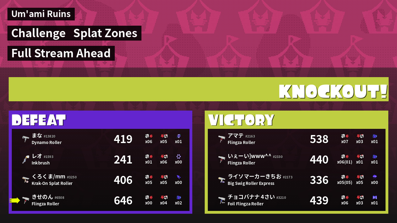 | Weapon | Flingza Roller ( Ink Mine / Tenta Missiles) | ||